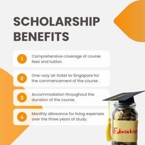 - One-way air ticket to Singapore for the commencement of the course.